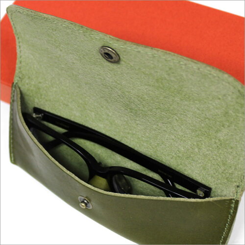 「栃木レザー」メガネケース L-204171 味わい深い国産レザーとアルミを組み合わせた眼鏡ケース。